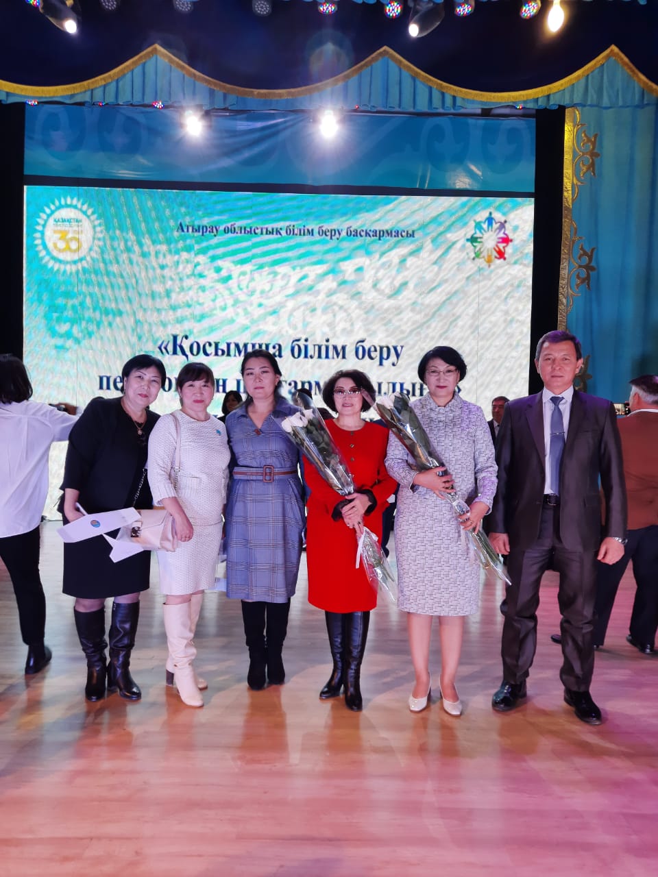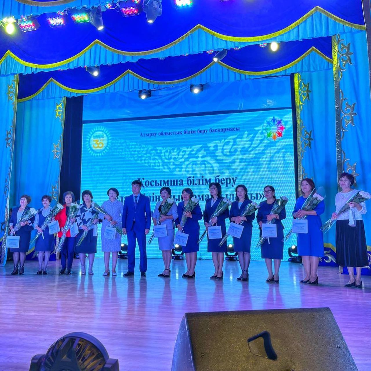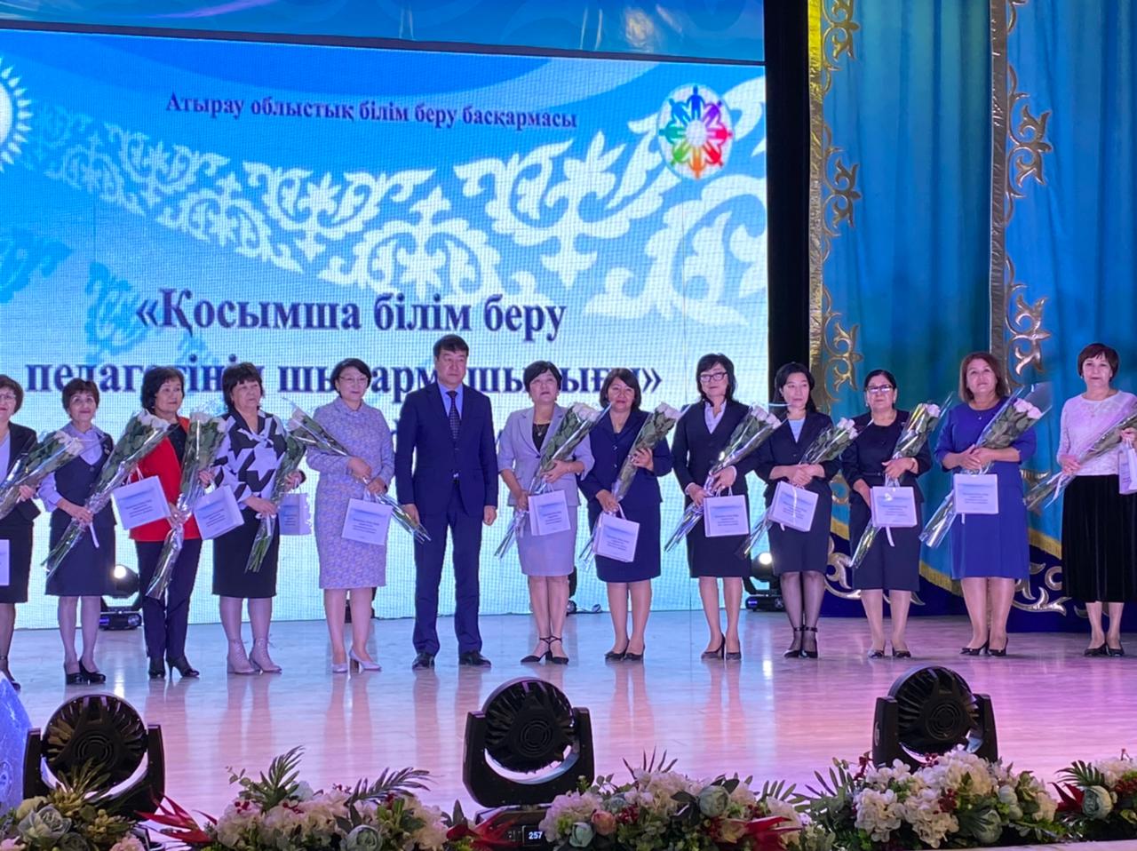 Одан соң қосымша білім беру саласының дамуына сіңірген еңбегі үшін тағы бірқатар педагогке, оның ішінде мектебіміздің «қобыз-прима» мамандығының оқытушысы Куаншалиева Ляззат Анисовна және облыстағы 6 жеке меншік қосымша білім беру ұйымына Білім беру басқармасының алғыс хаты табысталды.
