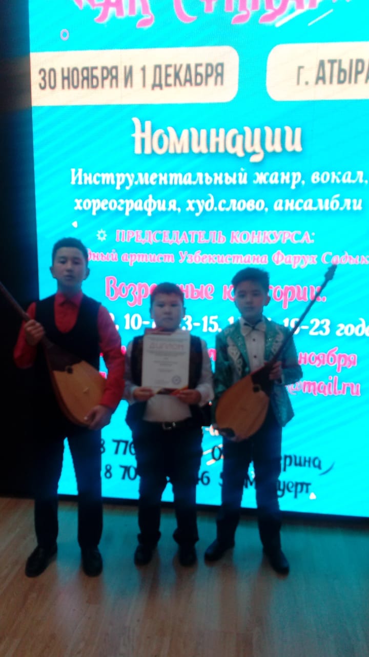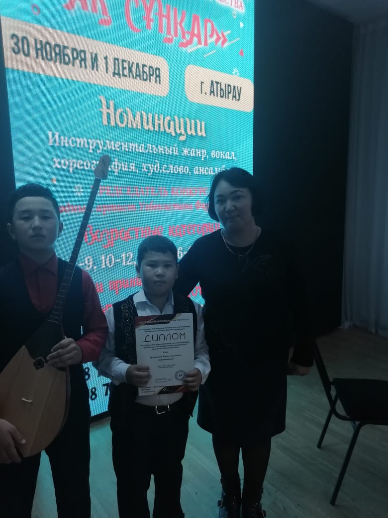 Аталған байқауға Мақат балалар өнер мектебінен вокал номинациясы бойынша қатысқан Ергенова Динара Мирамқызының оқушылары Жекенбай Жансая ІІ орынға, Ешпат Мөлдір ІІІ орынға ие болды. Түсіпқалиева Райхан Аманқосқызының оқушылары Хайруллин Ахмет І орын, Демеу Гүлзар ІІІ орын, Омарова Гүлмира Қабылханқызының оқушылары Төлеген Равиль І орын, Бағытжанұлы Таңнұр ІІ орын, Темірбекұлы Мәди ІІІ орын иеленді.