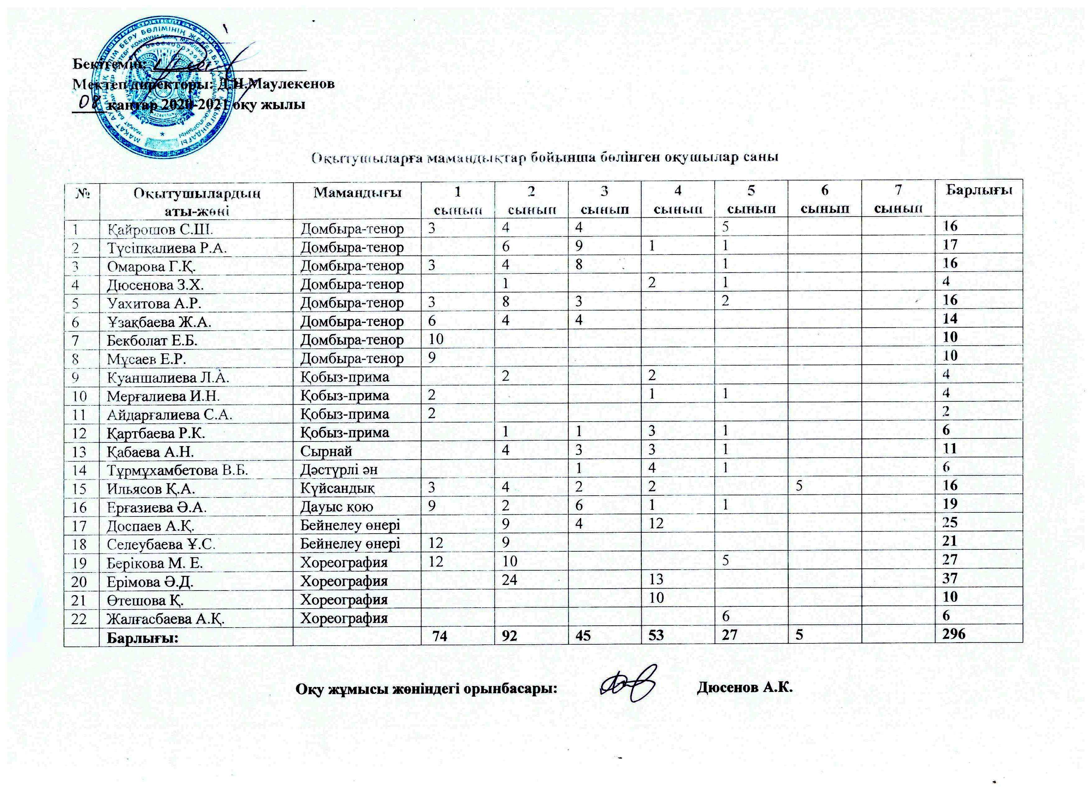 Толығырақ: Оқытушыларға мамандықтар бойынша бөлінген оқушылар саны